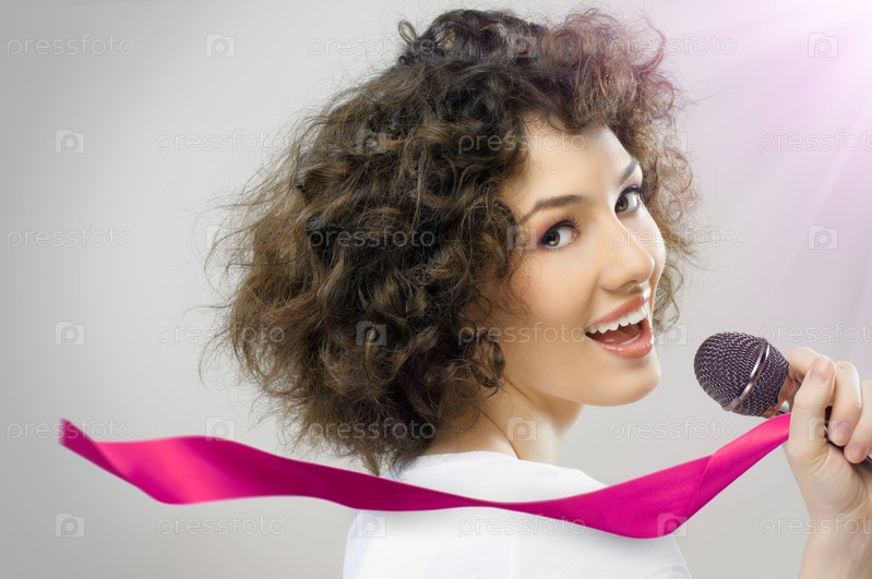 Девушка поет в караоке