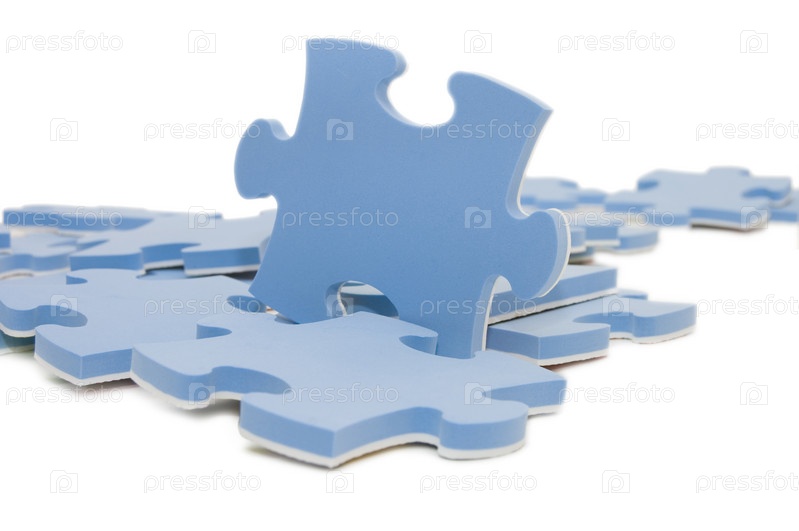 Голубые кусочки паззла изолированы на белом