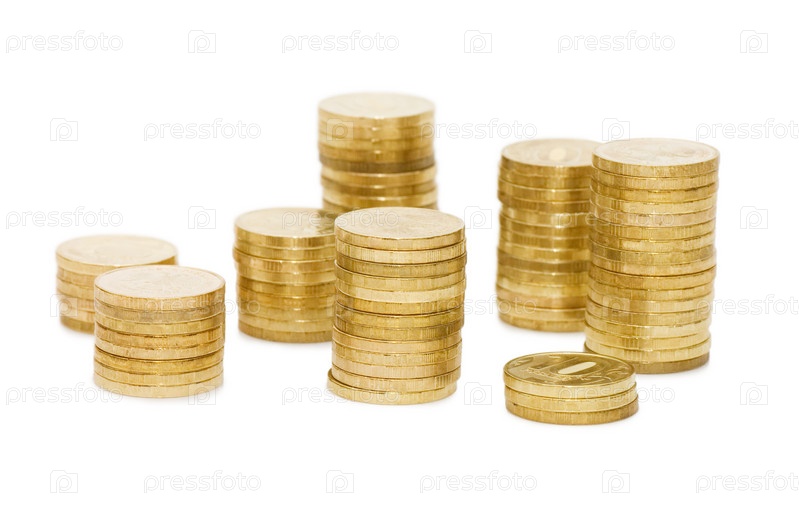 Золотые монеты на белом фоне
