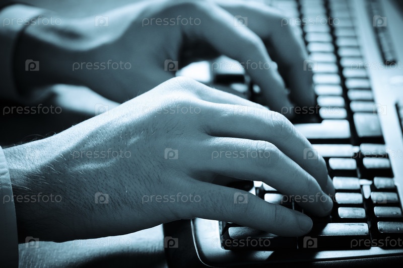 Крупным планом мужские руки, печатающие на клавиатуре