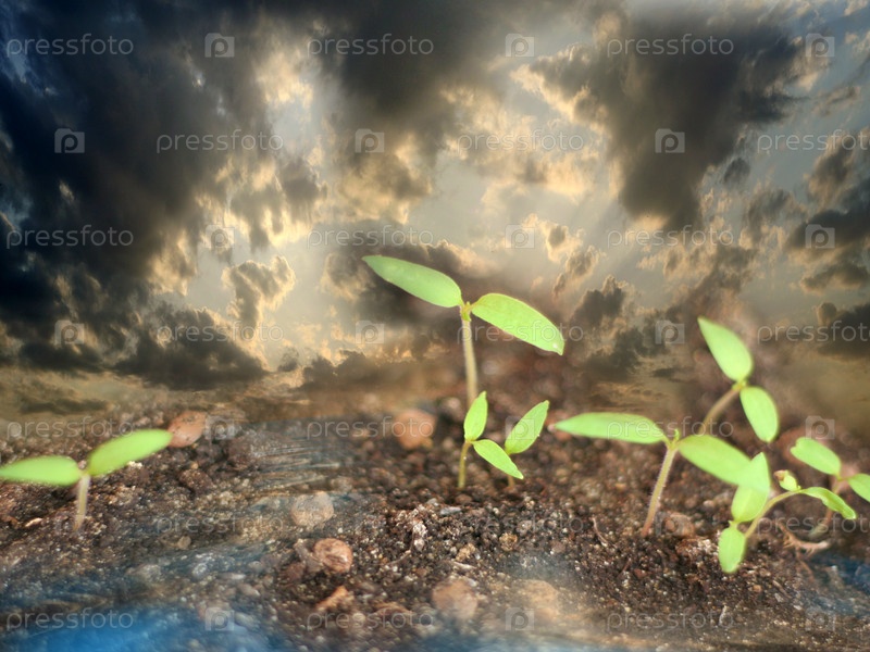 Молодые побеги под облачным небом