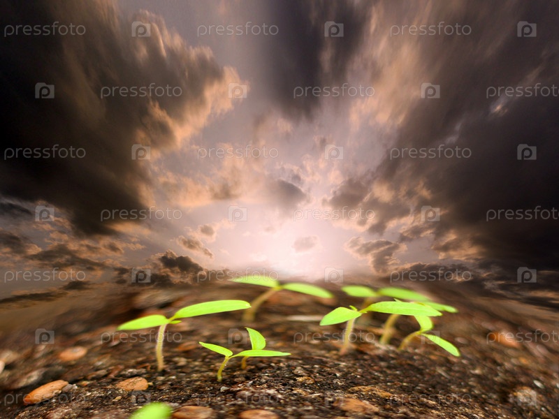 Молодые побеги под облачным небом