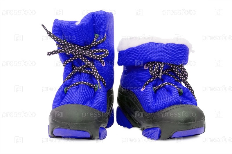 Синие зимние детские ботинки изолированы на белом фоне