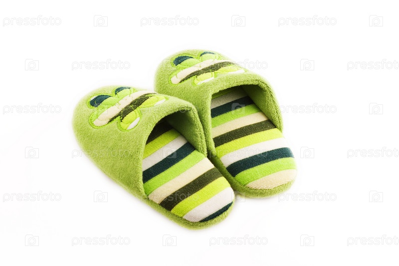 Зеленые тапочки на белом фоне