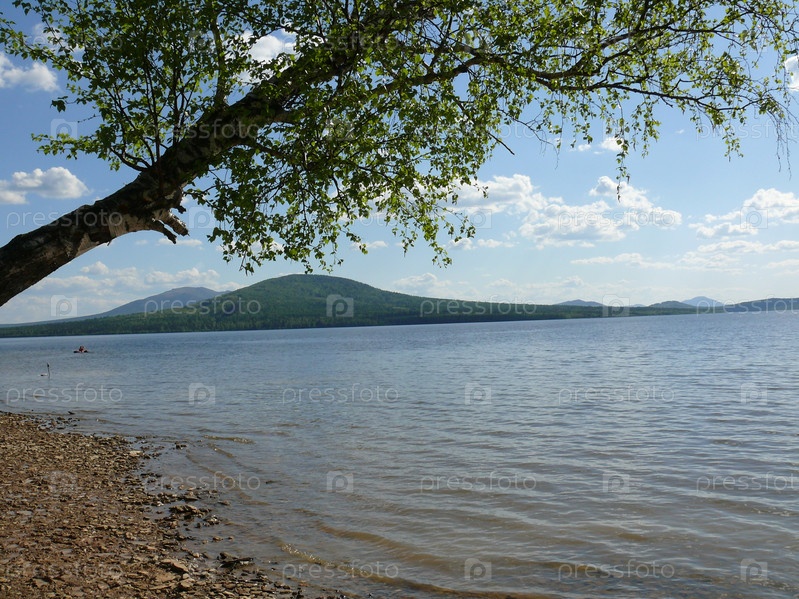 Озеро в ясный и солнечный день