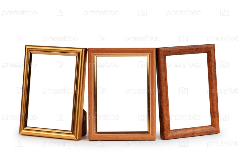 Три деревянных фоторамки на белом фоне