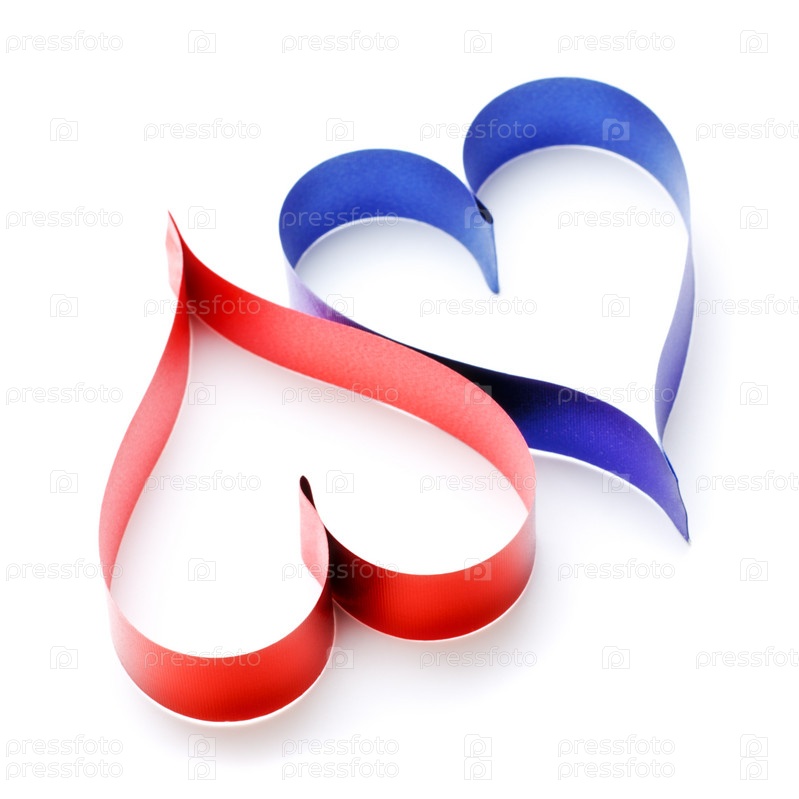 Две ленты в форме сердец на белом фоне