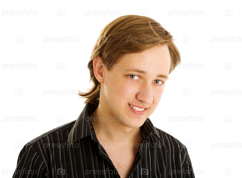 Улыбающийся молодой человек крупным планом на белом фоне