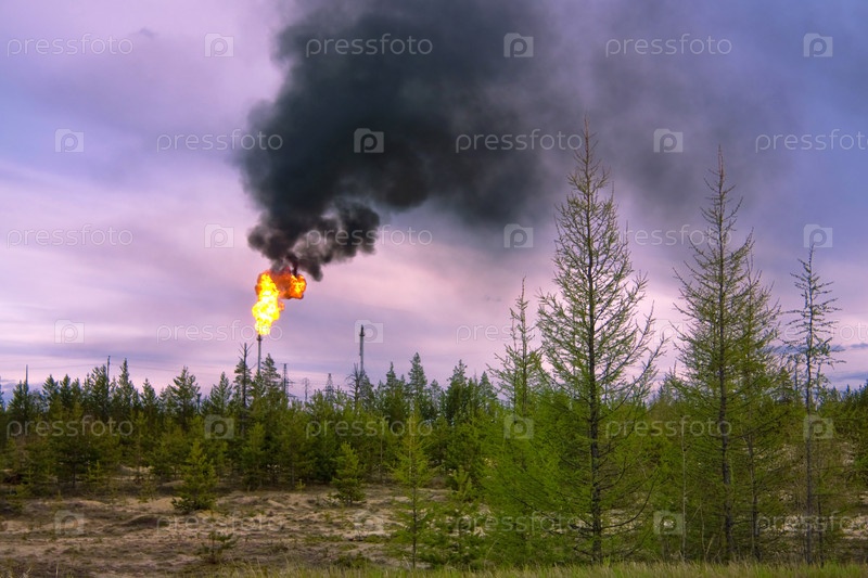 Нефтяной факел в Западной Сибири.Загрязнение окружающей среды