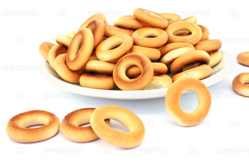 Сушки на тарелке на белом фоне