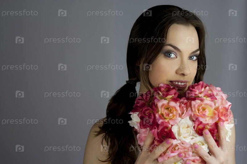 Красивая девушка с большим цветочным сердцем