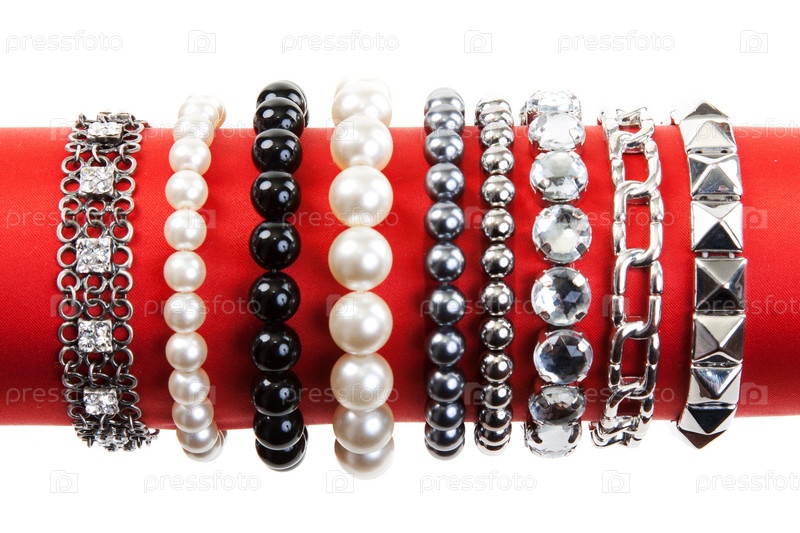 Женские браслеты на белом фоне