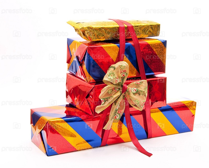 Подарки, перевязанные лентой и украшенные бантом