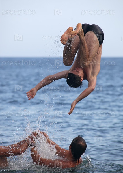 Молодой человек, прыгающий в воду