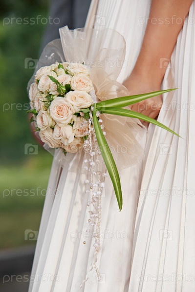 Свадебный букет в руке невесты крупным планом