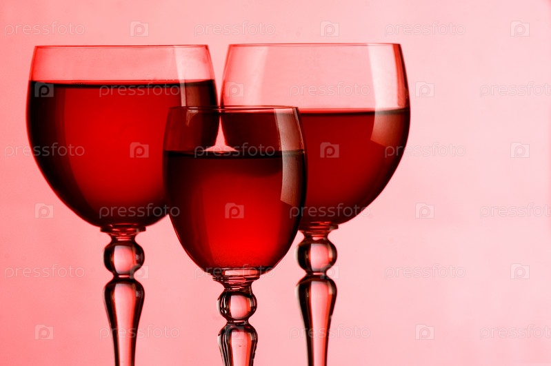 Бокалы с вином на розовом фоне