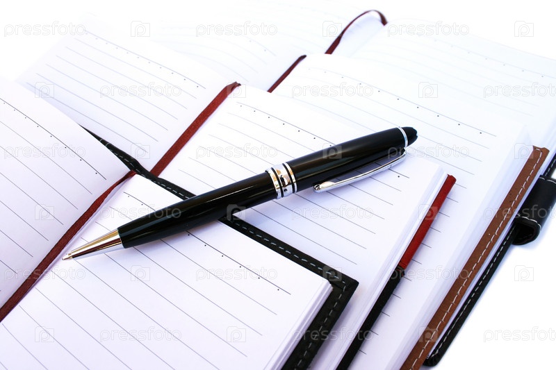 Блокноты и ручка на белом фоне