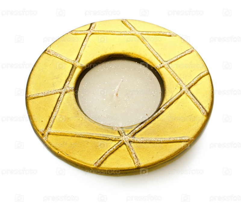 Круглая желтая свеча на белом фоне