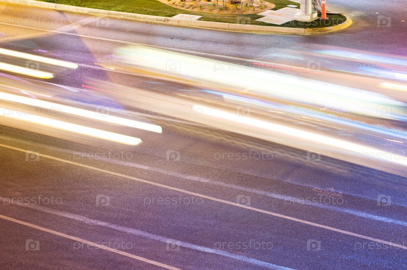 Автомобили и свет фар на вечерней дороге, снятые с длинной выдержкой