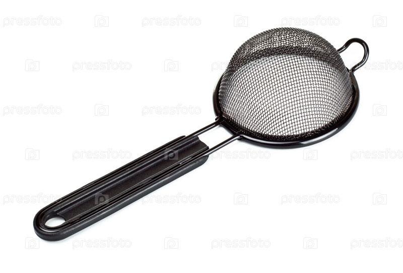 Сито с черной ручкой на белом фоне