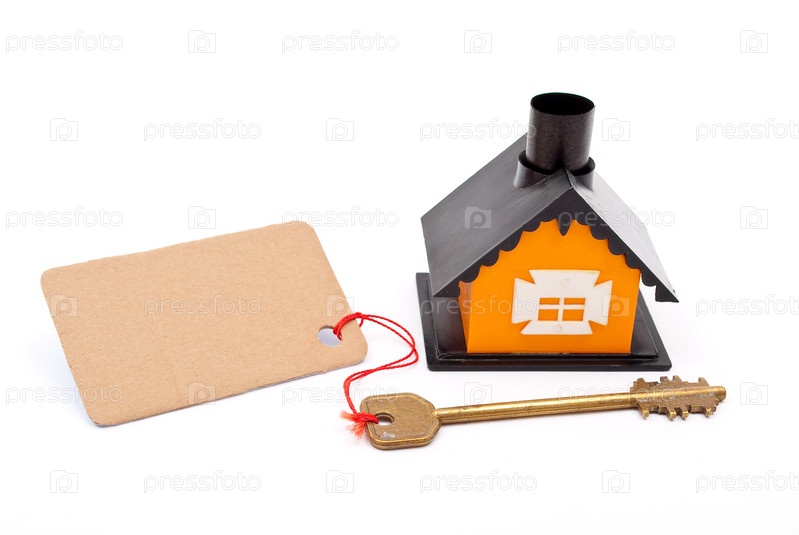 Игрушечный домик и ключ с прикрепленной биркой