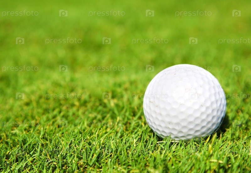 Шарик для гольфа, лежащий на зеленой траве