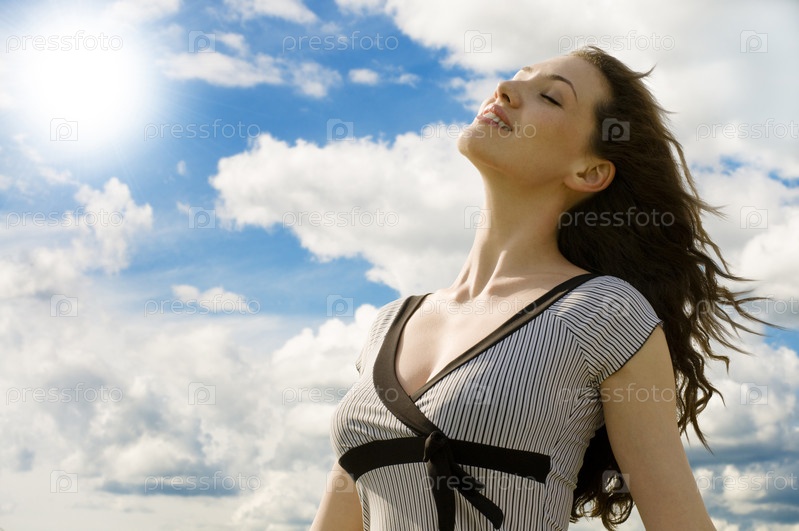 Красивая девушка на голубом небе