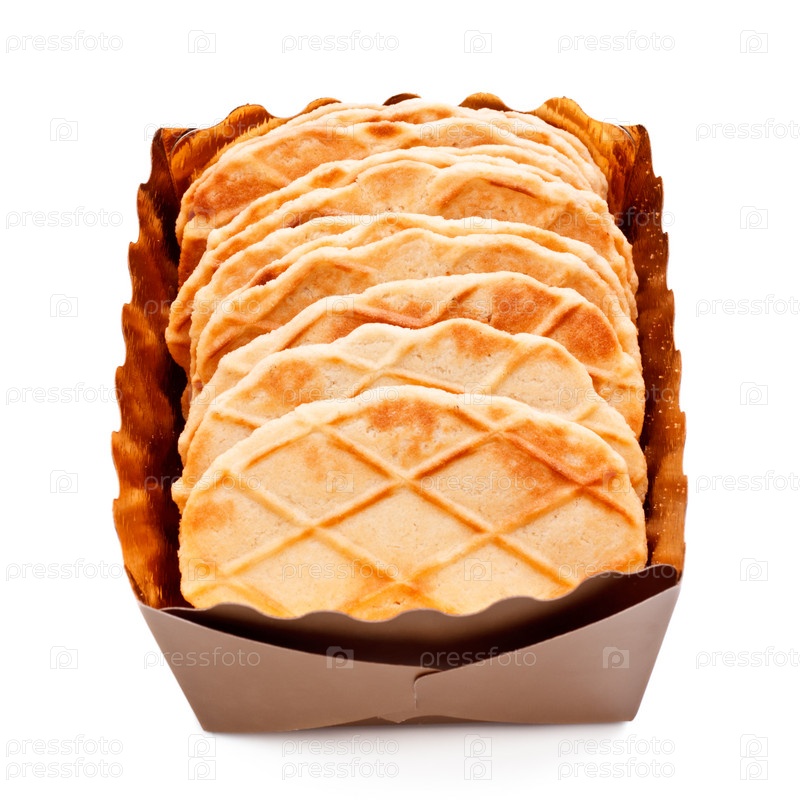 Хрустящие вафли в коробке изолированы на белом фоне