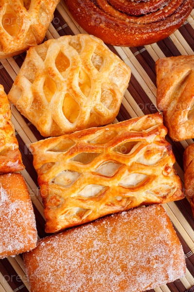 Различная выпечка на бамбуковой салфетке