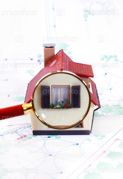 Домик и лупа на чертеже