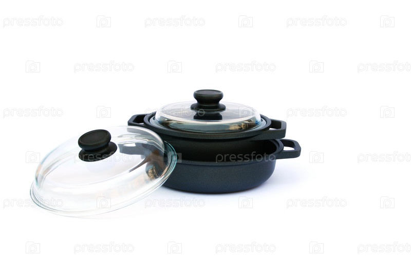 Кастрюля и сковорода на белом фоне