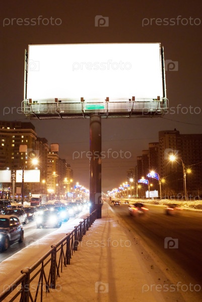Пустой рекламный щит на вечерней улице
