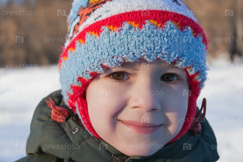 Портрет красивого улыбающегося мальчика в шляпе и куртке на улице