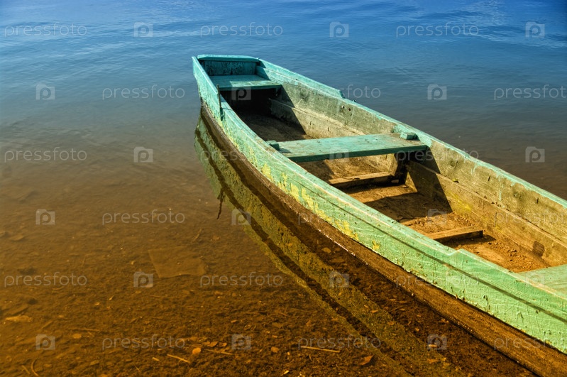Старая деревянная лодка на берегу водоема