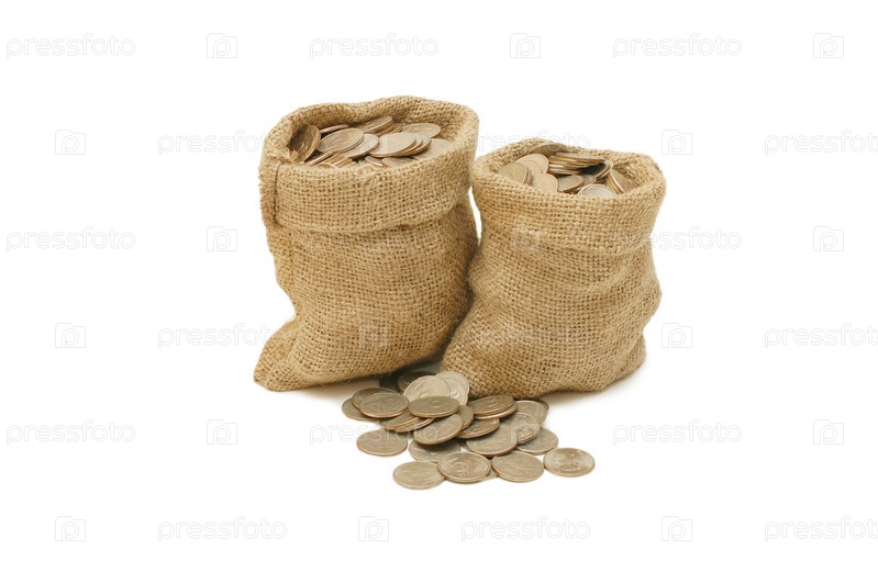 Два открытых мешка с денежными монетами