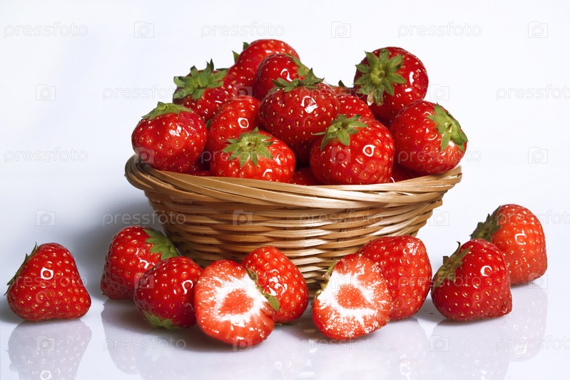 Спелая клубника в плетеной посуде