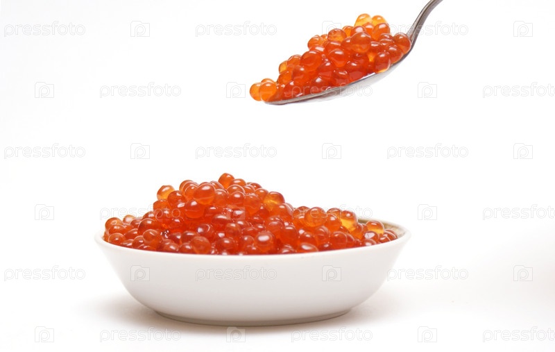 Красная икра в миске и на ложке