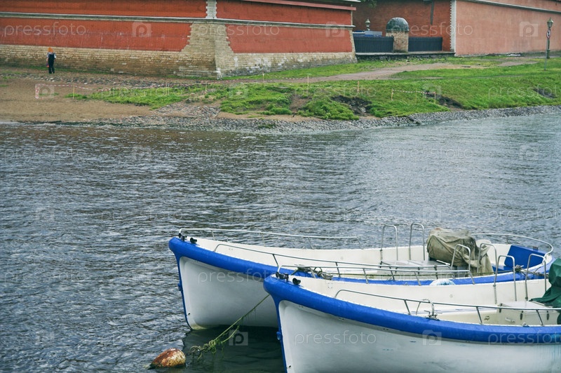 Лодки вблизи Петропавловской крепости в Санкт-Петербурге