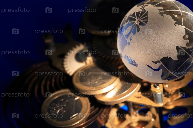 Стеклянный шар на монетах