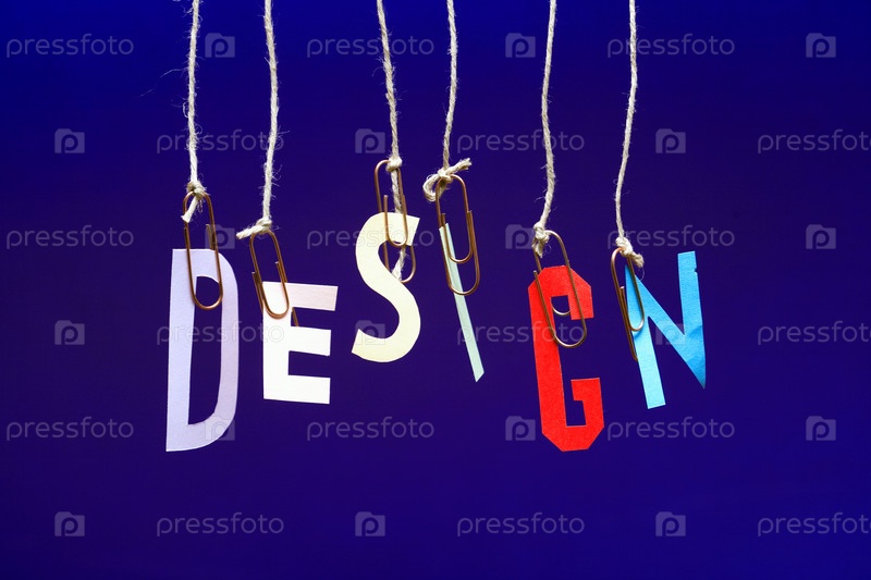Слово "Дизайн" из цветной бумаги висит на веревках