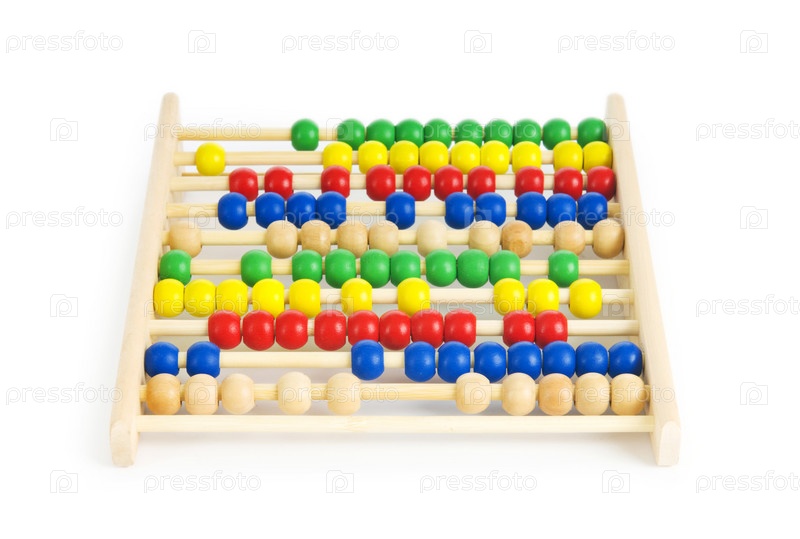Счеты с цветными шариками, изолированные на белом фоне
