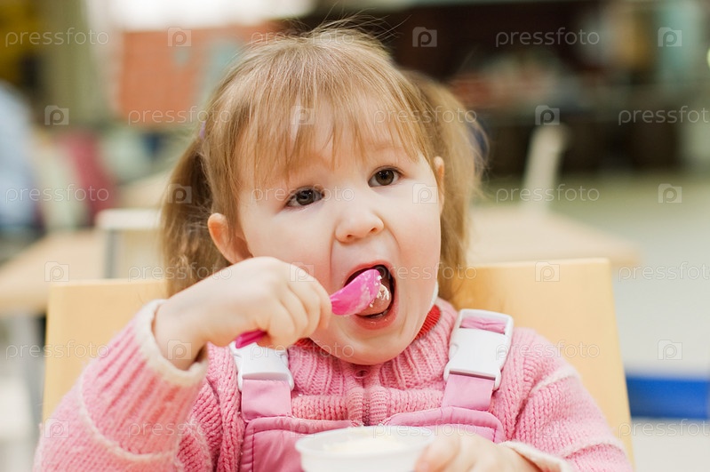 Маленькая девочка, кушающая мороженое