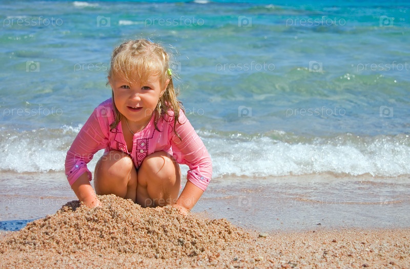 Маленькая девочка, играющая на берегу моря