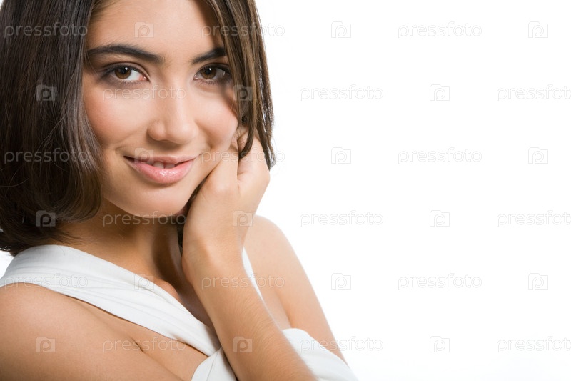 Портрет прекрасной молодой женщины, изолированной на белом фоне