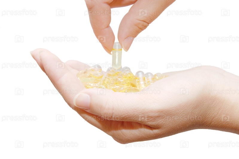 Капсулы в руках на белом фоне