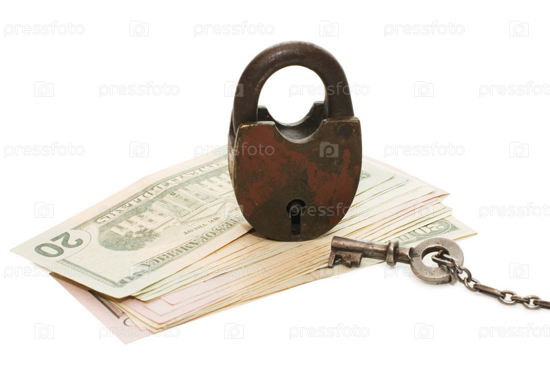 Замок и деньги, изолированы на белом