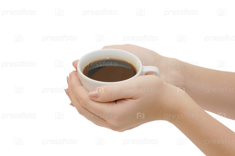Чашка кофе в руках на белом фоне