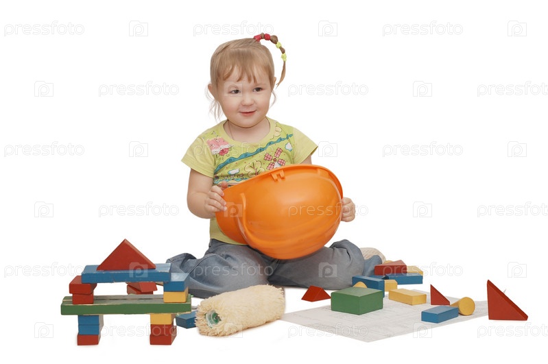 Маленькая девочка играет в строителя