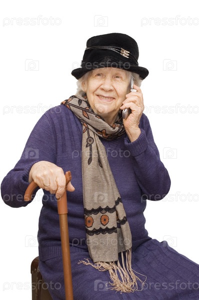 Старушка разговаривает по мобильному телефону