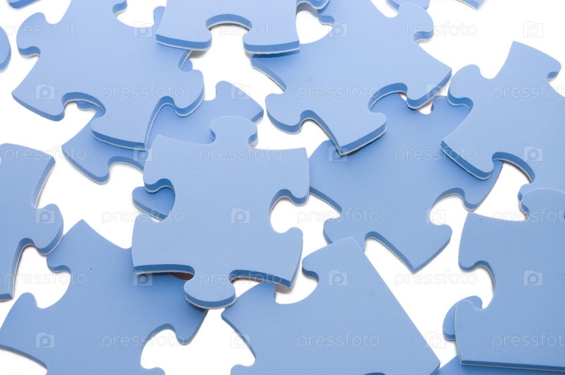Синие пазлы на белом фоне крупным планом